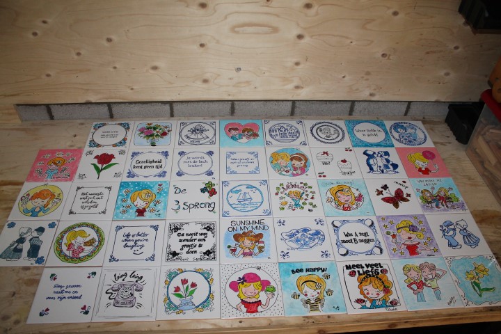 Donderdag 15 maart hebben 26 dames van “de 3 sprong” tijdens een teamdag ca. 40 tegeltjes beschilderd. Deze tegeltjes worden verwerkt in een kunstwerk voor op de afdeling…