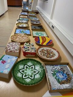 Zaterdag 22 november maar liefst 2 workshops op 1 dag mogen verzorgen. In de ochtend in Venray op locatie ter gelegenheid van de 86e verjaardag van een oma met die oma en haar kleindochters een creatieve workshop mozaïeken mogen verzorgen, met prachtige resultaten!