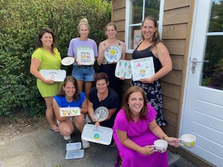 En in de middag in mijn eigen KreaSchuur voor een groepje vriendinnen die een vriendinnenweekend in Sevenum hadden geboekt een creatieve workshop servies beschilderen mogen verzorgen.