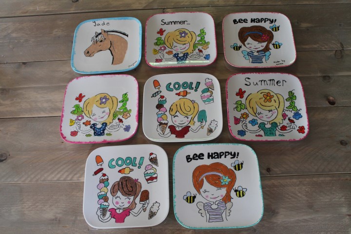 Gezellig met 8 meiden van 10 en 11 jaar een workshop servies beschilderen gedaan tijdens het kinderfeestje van Pien.